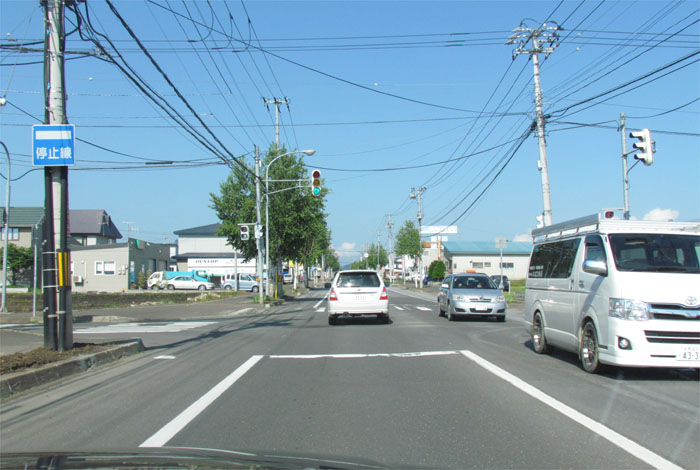 午前7時50分、南岸通り、野付牛自動車学校前から無加川町方向