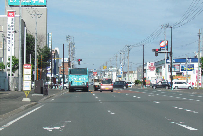 午前7時50分、北4条通りの国道39号交差点から緑園通り方向