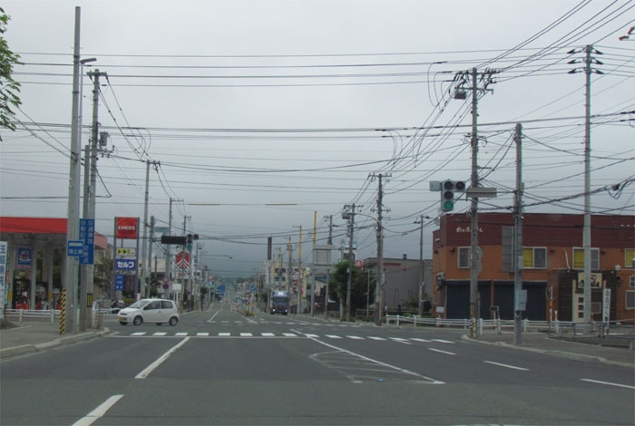南岸通り、とん田通りの交差点から右は北光神社方向