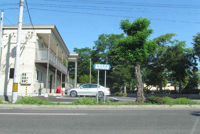 前方の街路樹の向こうが石北大通り