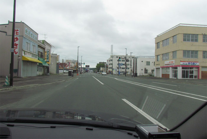 末広町の南岸通り、西4号線バス停前から野付牛自動車学校方向