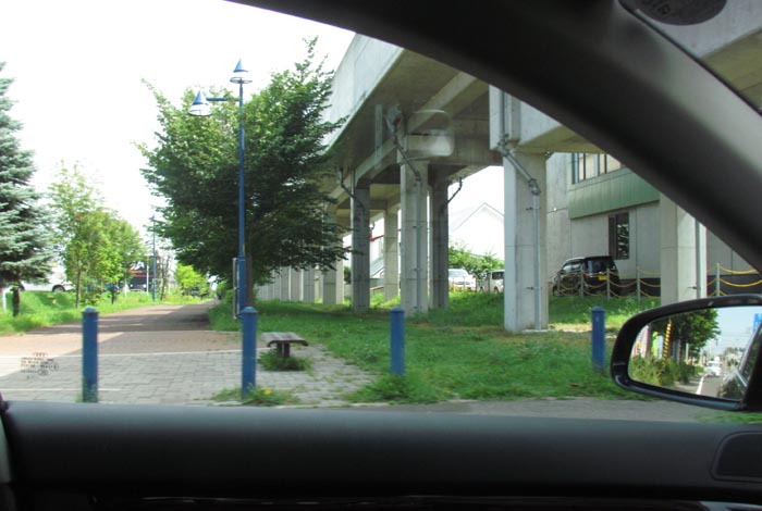 前方がJR石北本線高架橋、写真右が北見駅方向