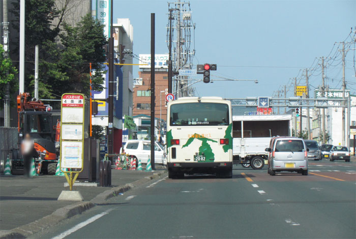 午前7時50分、北4条通りの国道39号交差点から緑園通り方向