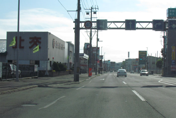 南岸通り、とん田通りの交差点から右は北光神社方向