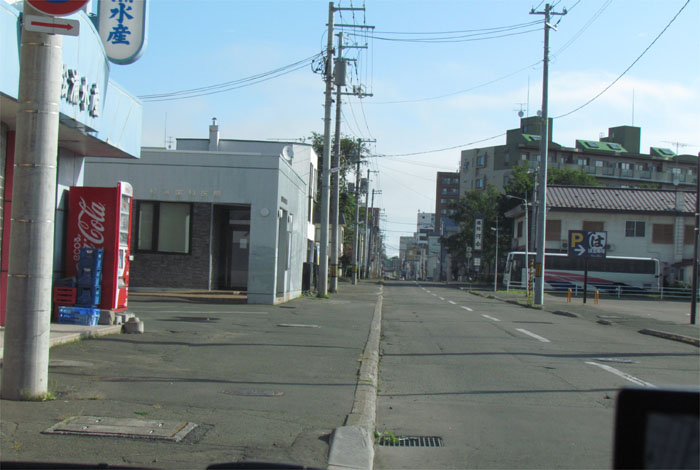 末広町の南岸通り、西4号線バス停前から野付牛自動車学校方向