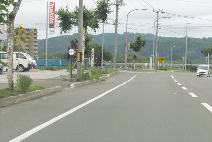 末広町の南岸通り、西4号線バス停前から野付牛自動車学校方向