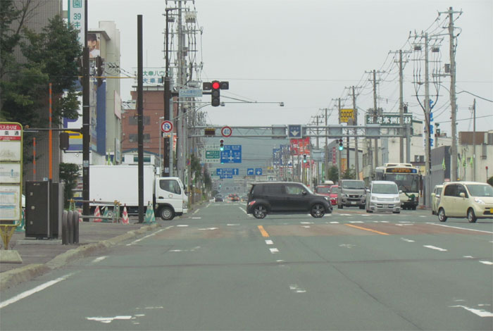 午前7時50分、北4条通りの国道39号交差点から緑園通り方向