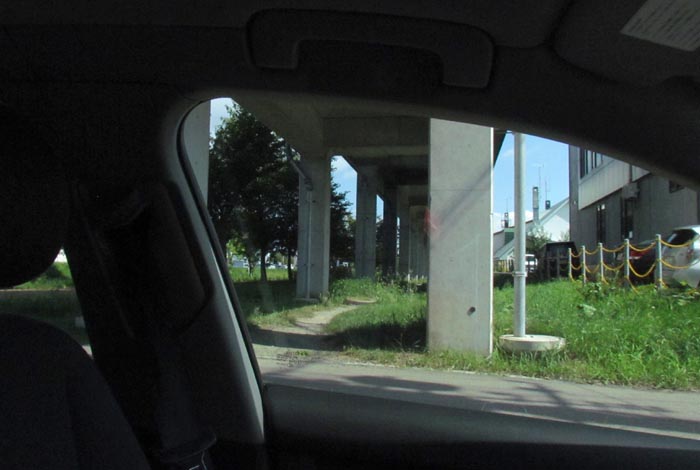 前方がJR石北本線高架橋、写真右が北見駅方向