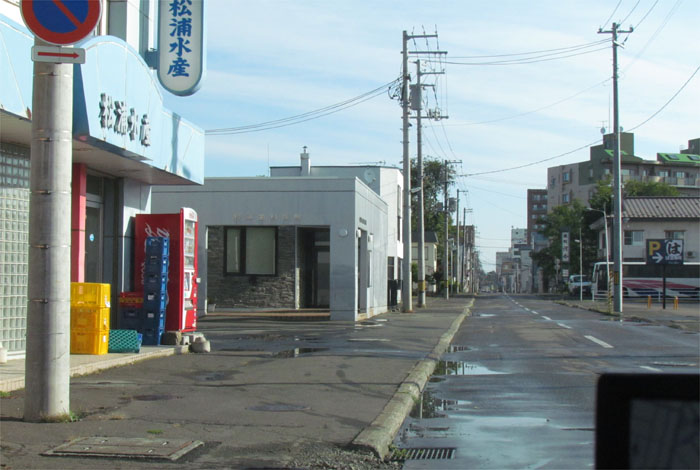 末広町の南岸通り、西4号線バス停前から野付牛自動車学校方向