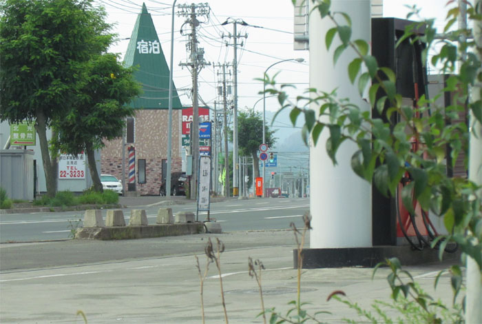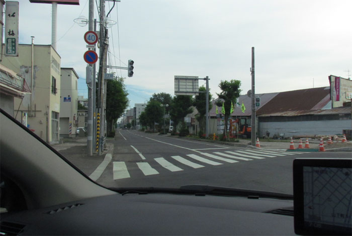南岸通り、野付牛自動車学校前、奥がとん田通りの交差点