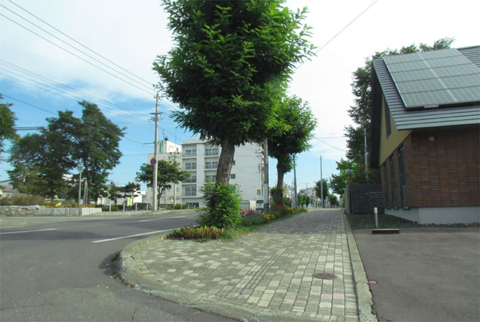 前方の街路樹の向こうが石北大通り