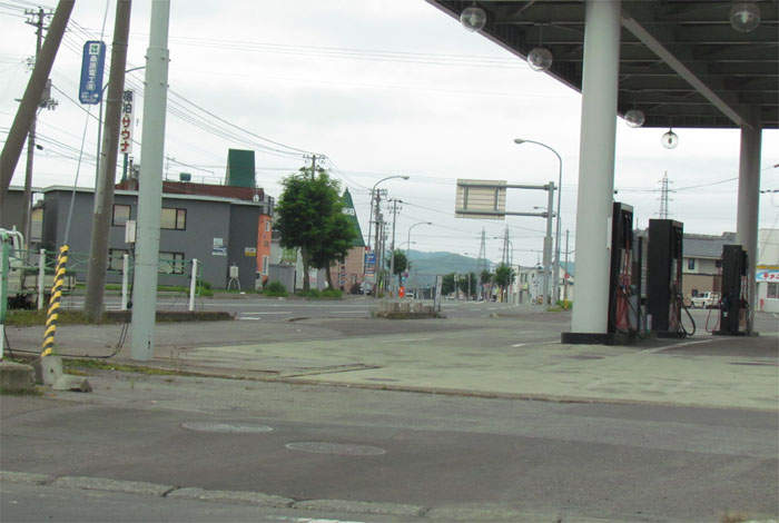 南岸通り、野付牛自動車学校前、奥がとん田通りの交差点