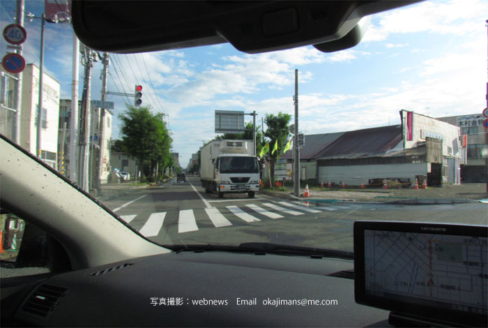 南岸通り、野付牛自動車学校前、奥がとん田通りの交差点