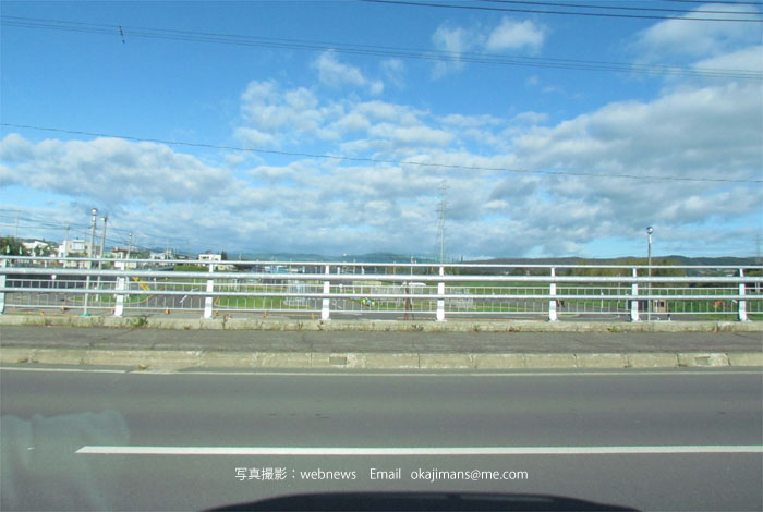 午前7時50分、とん田通り、無加川橋から上流の仁頃山の方向