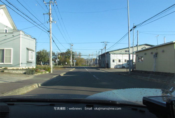 末広町の南岸通り、西4号線バス停前から野付牛自動車学校方向