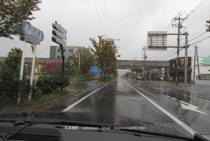 前方がJR石北本線高架橋、写真右が北見駅方向