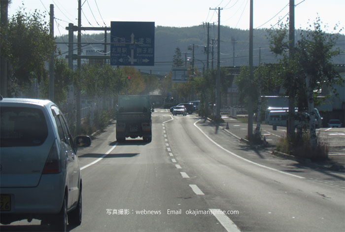 写真右が野付牛自動車学校方向
