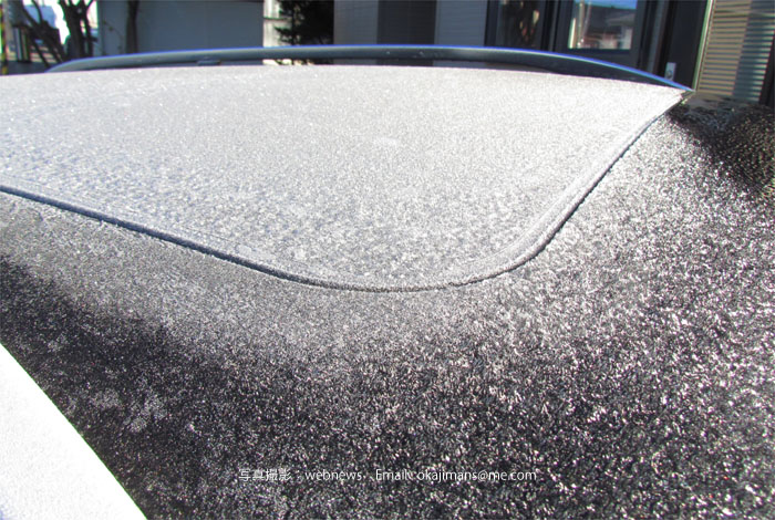 クルマの屋根が今シーズン初氷り