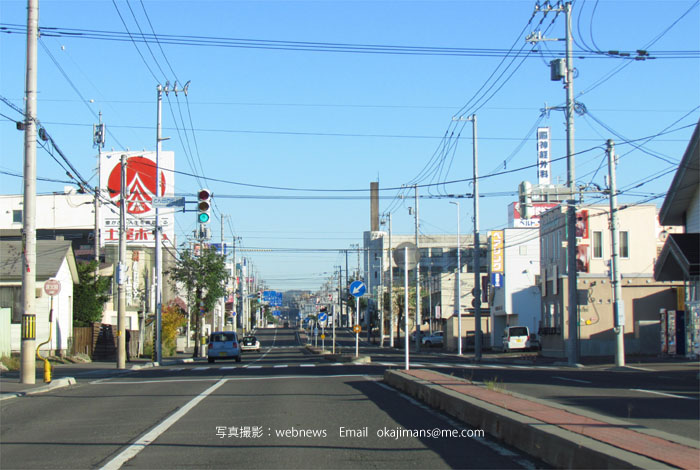 南岸通り、とん田通りの交差点から右は北光神社方向