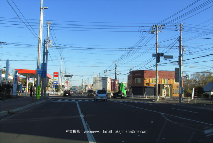 南岸通り、野付牛自動車学校前、奥がとん田通りの交差点