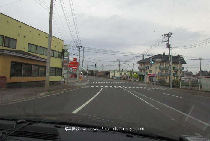 南岸通り、野付牛自動車学校前、奥がとん田通りの交差点
