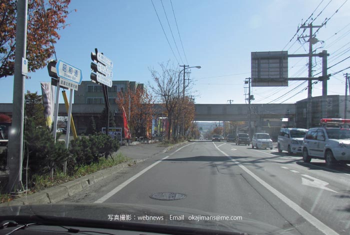 前方がJR石北本線高架橋、写真右が北見駅方向