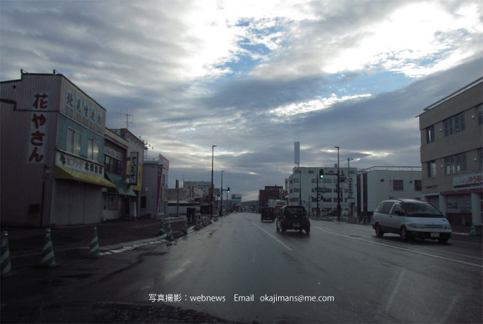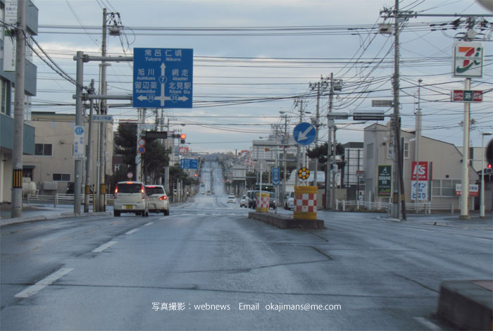 末広町の南岸通り、西4号線バス停前から野付牛自動車学校方向
