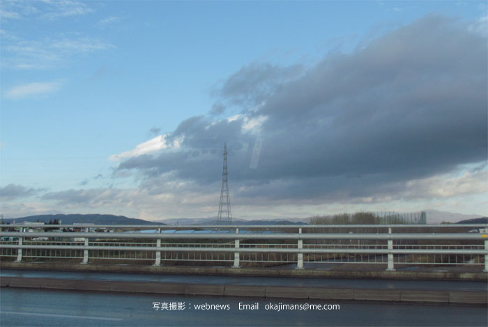 午前7時50分、とん田通り、無加川橋から上流の仁頃山の方向