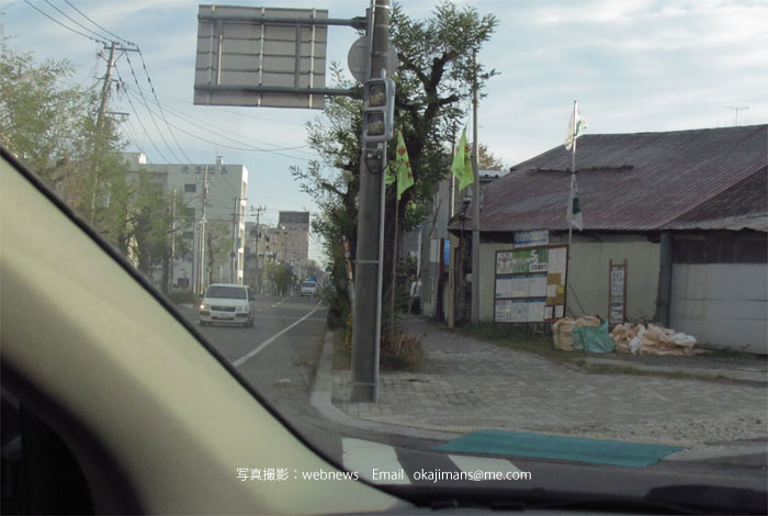 南岸通り、野付牛自動車学校前、奥がとん田通りの交差点