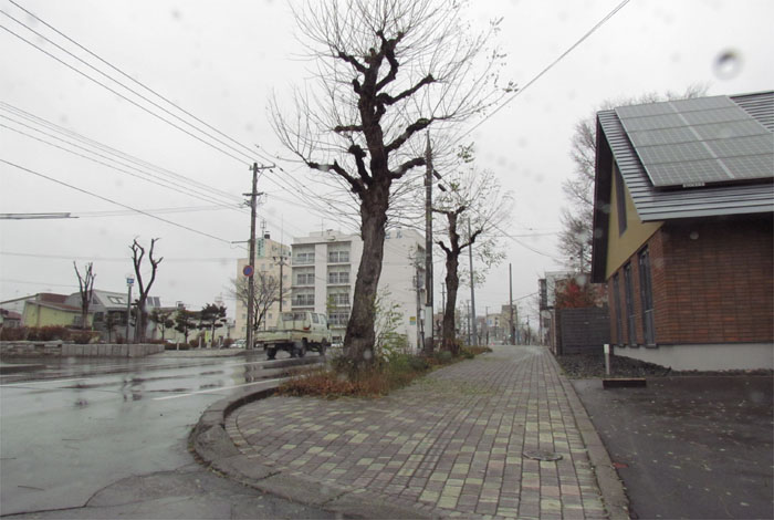 午前7時40分、松浦水産駐車場裏の通りを北3条通り側から北4条通り方向