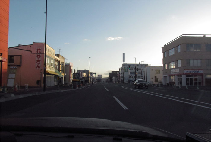 末広町の南岸通り、西4号線バス停前から野付牛自動車学校方向
