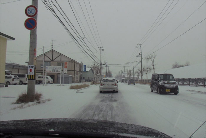 午前7時50分、南岸通り、野付牛自動車学校前から無加川町方向