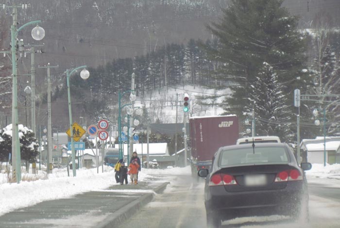 生田原消防前から右折してホテルノースキングの第2駐車場前