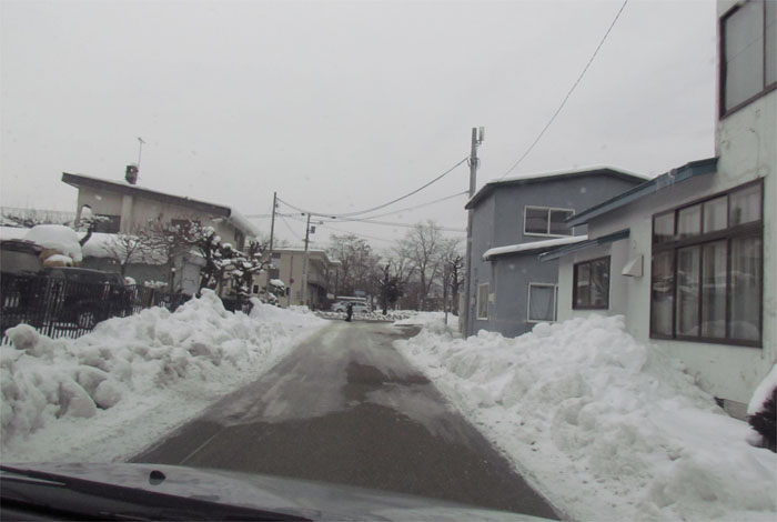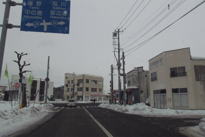 午前7時40分、松浦水産駐車場裏の通りを北3条通り側から北4条通り方向