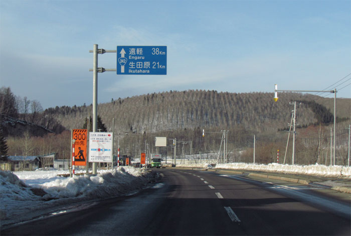 午後2時10分、留辺蘂、国道39号から右折で国道242号、金華方向