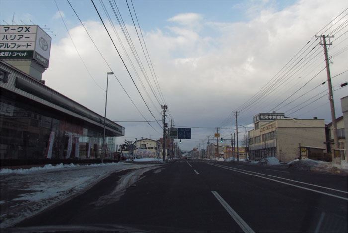 国道39号、北見トヨペット前からとん田通り交差点方向