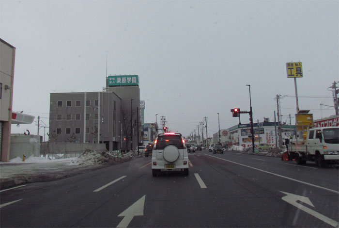 午前7時50分、北4条通りの国道39号交差点から緑園通り方向