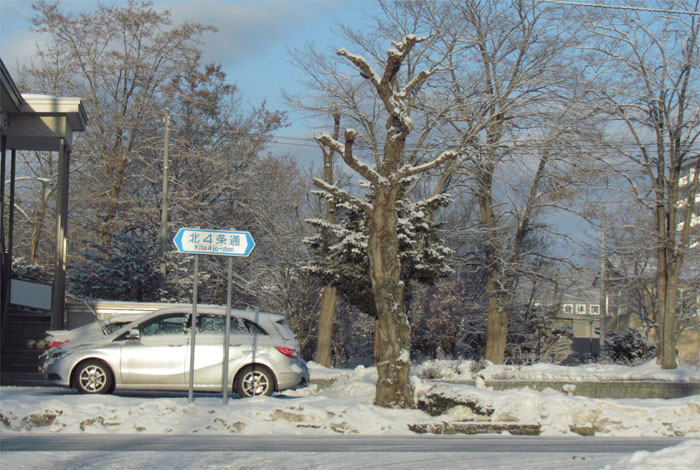 午前7時40分、松浦水産駐車場裏の通りを北3条通り側から北4条通り方向