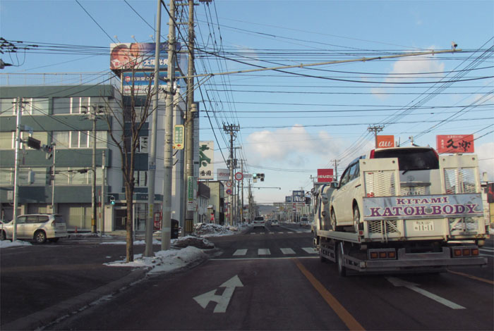 国道39号、北見トヨペット前からとん田通り交差点方向