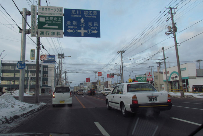 国道39号、北見トヨペット前からとん田通り交差点方向