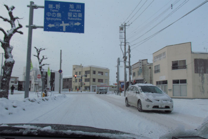 午前7時40分、松浦水産駐車場裏の通りを北3条通り側から北4条通り方向