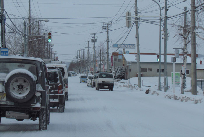 午前7時50分、南岸通り、野付牛自動車学校前から無加川町方向