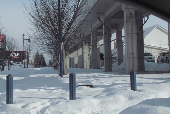 前方がJR石北本線高架橋、写真右が北見駅方向