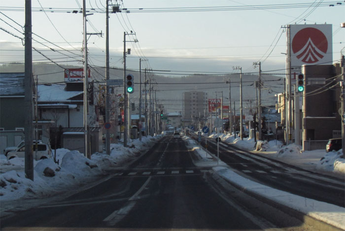 午前7時50分、とん田通り、北見中央病院