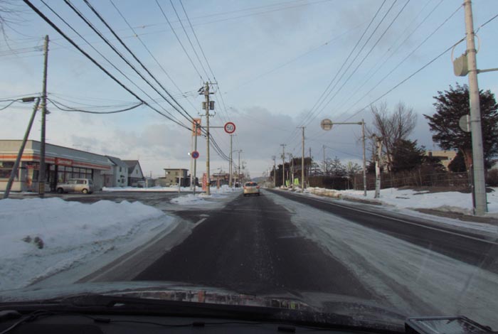 午前7時50分、南岸通り、野付牛自動車学校前から無加川町方向