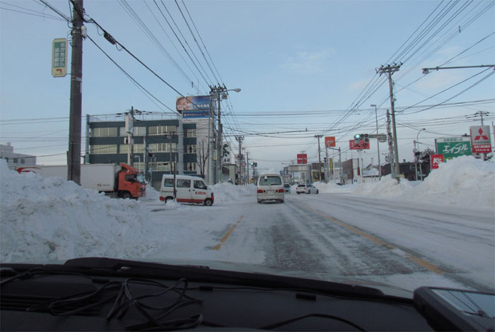 午前7時50分、北4条通りの国道39号交差点から緑園通り方向