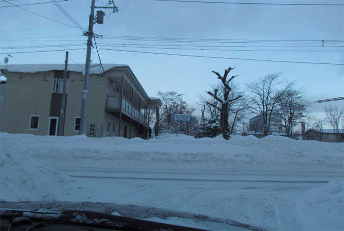 午前7時40分、松浦水産駐車場裏の通りを北3条通り側から北4条通り方向