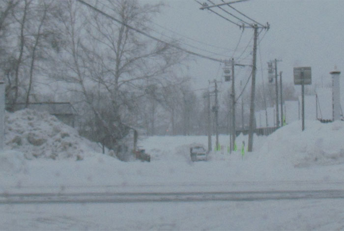 南岸通り、野付牛自動車学校前、奥がとん田通りの交差点