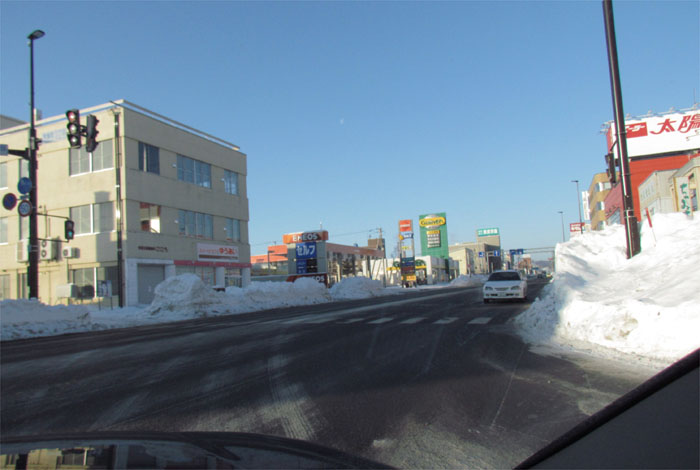午前7時50分、北4条通りの国道39号交差点から緑園通り方向