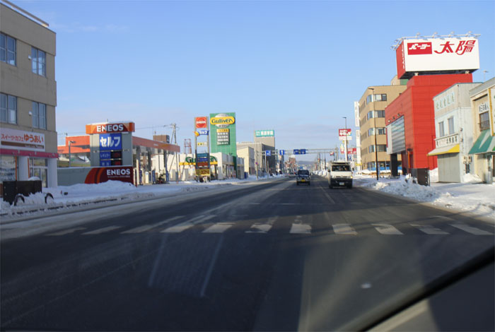 国道39号、北見トヨペット前からとん田通り交差点方向